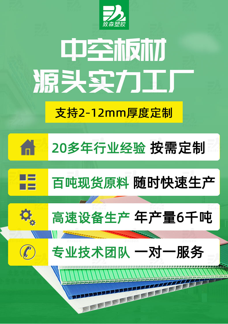 采用優質聚丙烯材質打造,PP中空板憑借輕量耐用、防潮抗壓的卓越性能,廣泛應用于物流包裝、建筑隔斷及廣告展板等領域,中空結構設計在降低重量的同時保障承重穩定性。